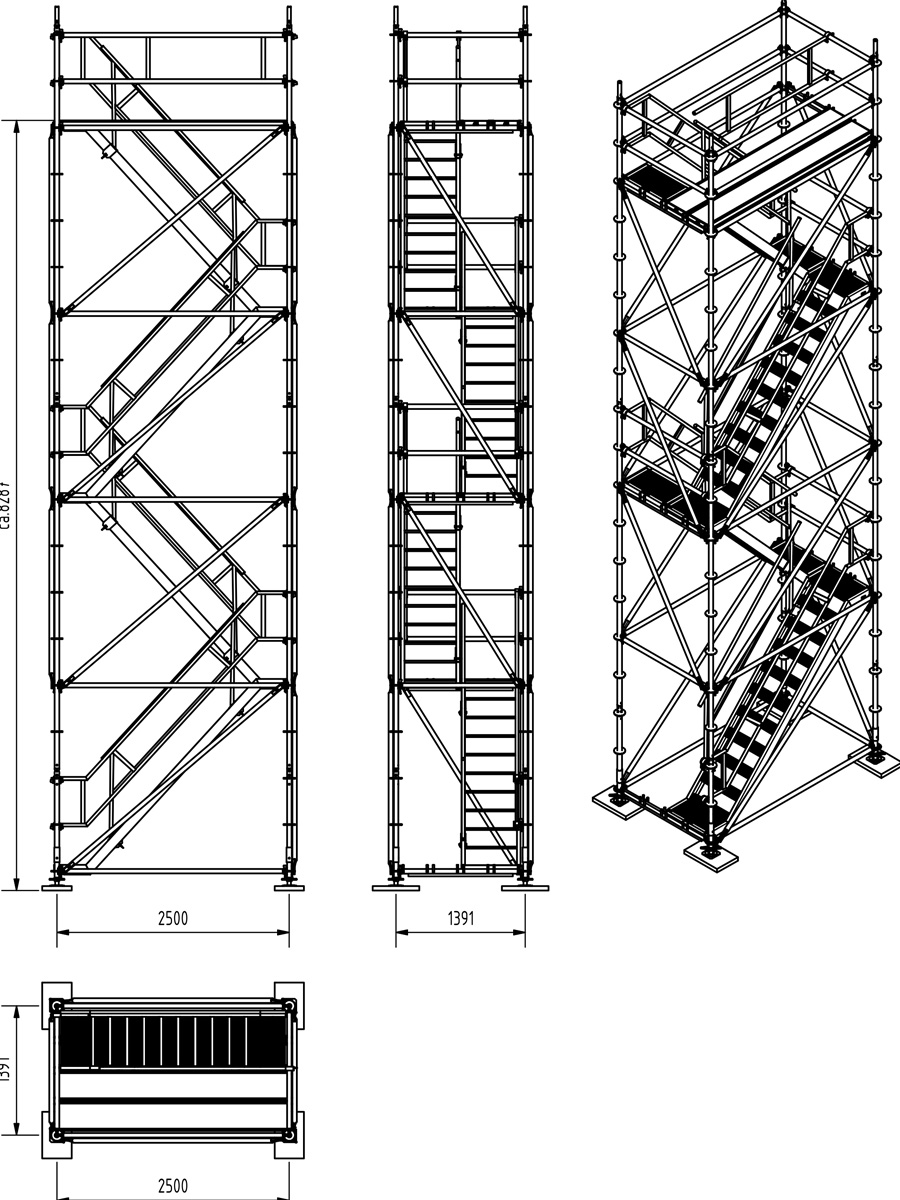 Ob als Stand-, Hänge- oder Rollgerüst, als Flächen-, Trag- und Raumgerüst, zur Sanierung von Brücken und historischen Gebäuden, oder für Rundrüstungen im Inneren von Tanks, das Modulgerüstes passt sich optimal dem Objekt an. Auch Nottreppentürme mit hohen Belastungen lassen sich aus Standardbauteilen problemlos errichten.
