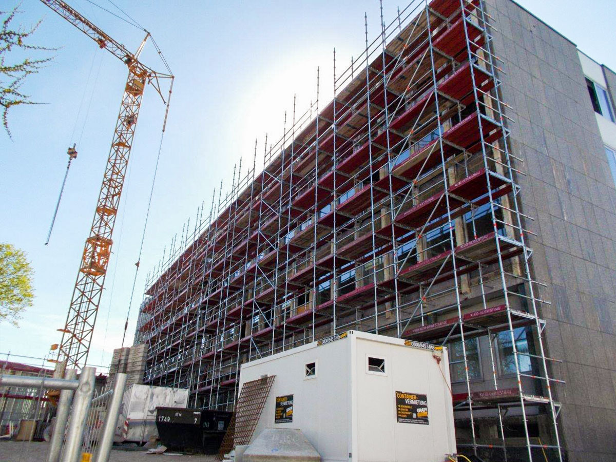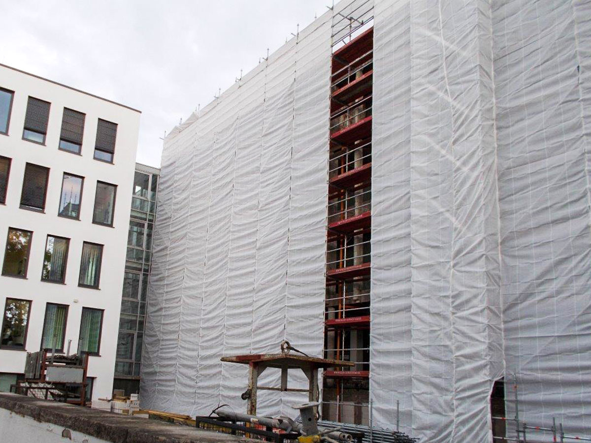 Vorübergehend errichtete Gerüstaufzüge, können dem Baufortschritt angepasst werden und decken nahezu jede Baustellensituation ab.